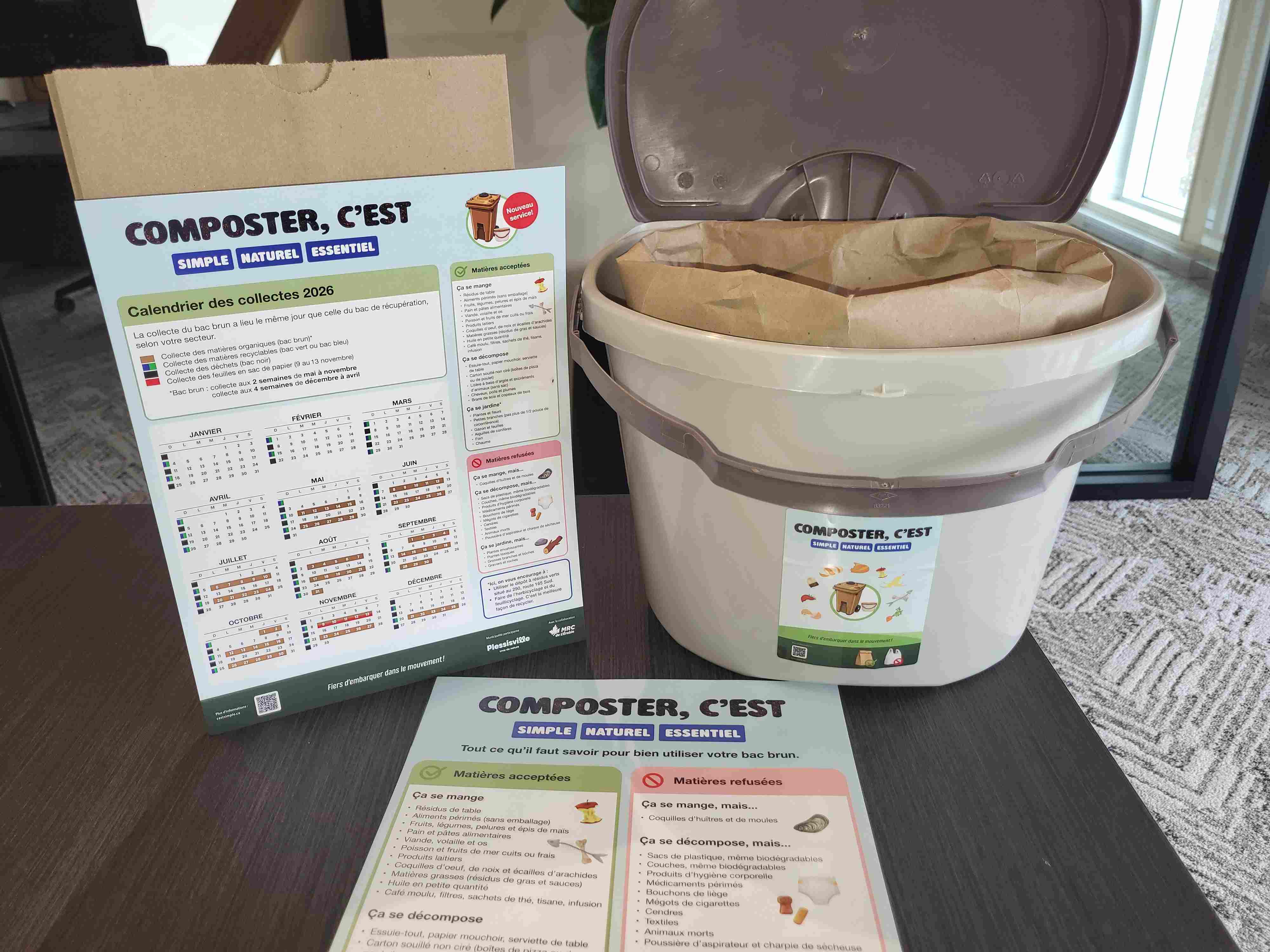 Livraison des bacs bruns du 20 au 23 avril et début de la collecte la semaine du 17 mai.